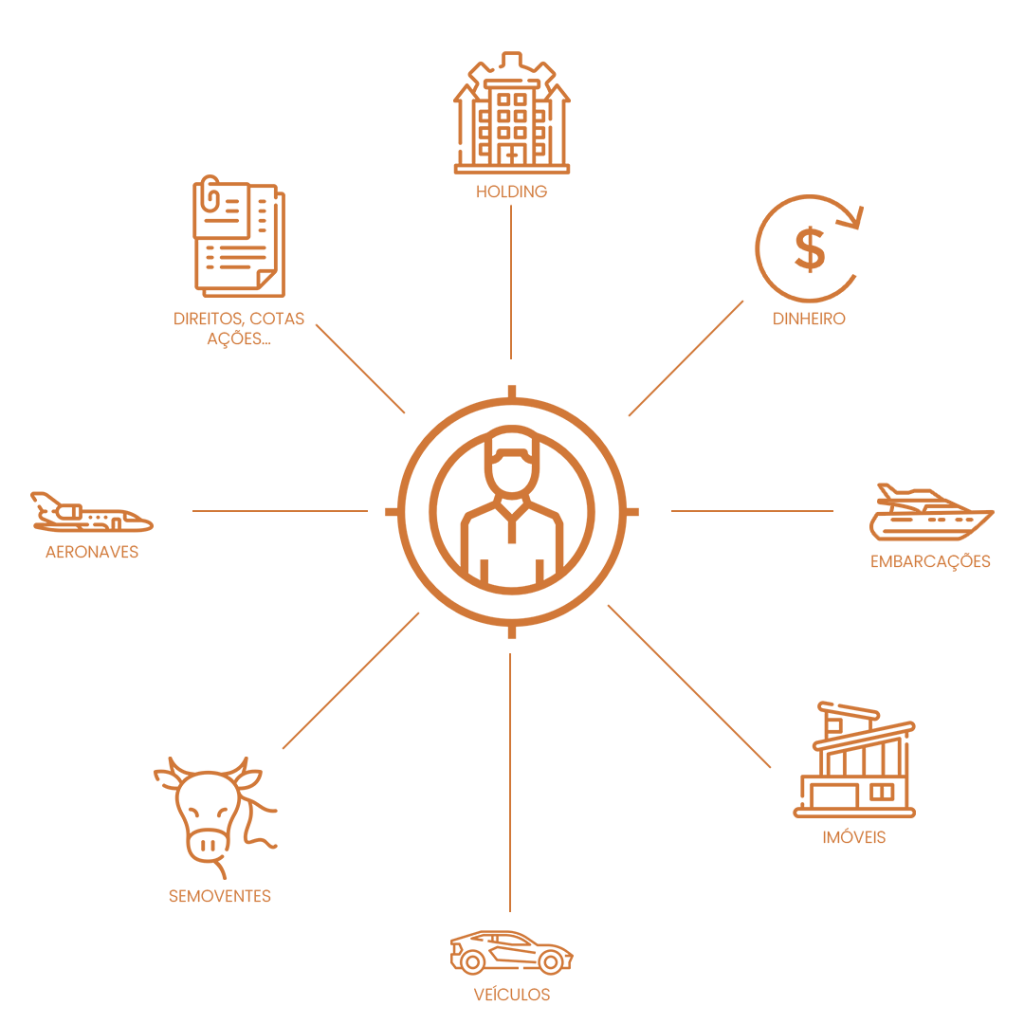 Mapeamento e localização de bens de devedores, avalistas e/ou garantidores envolvidos em operações de ocultação ou blindagem patrimonial.